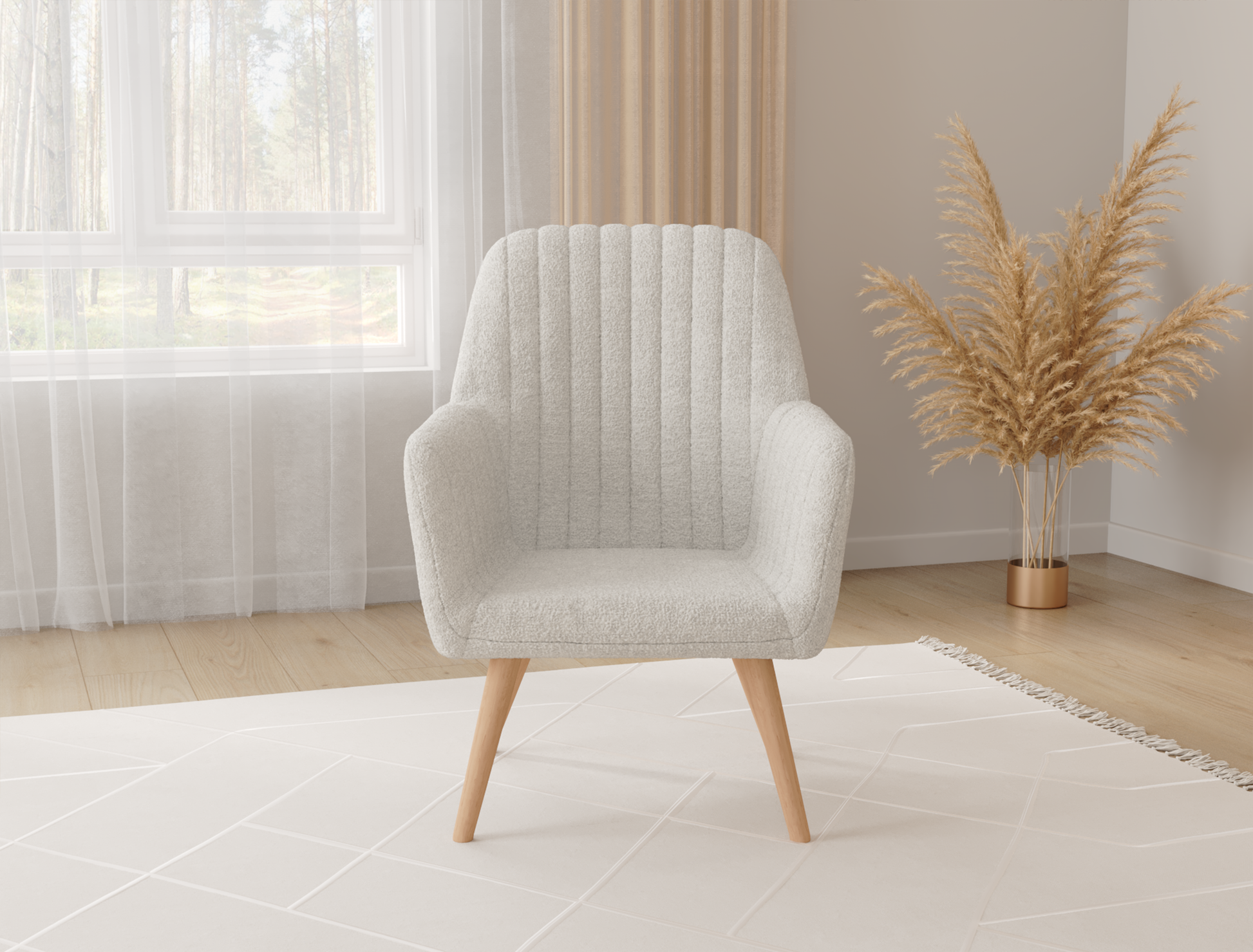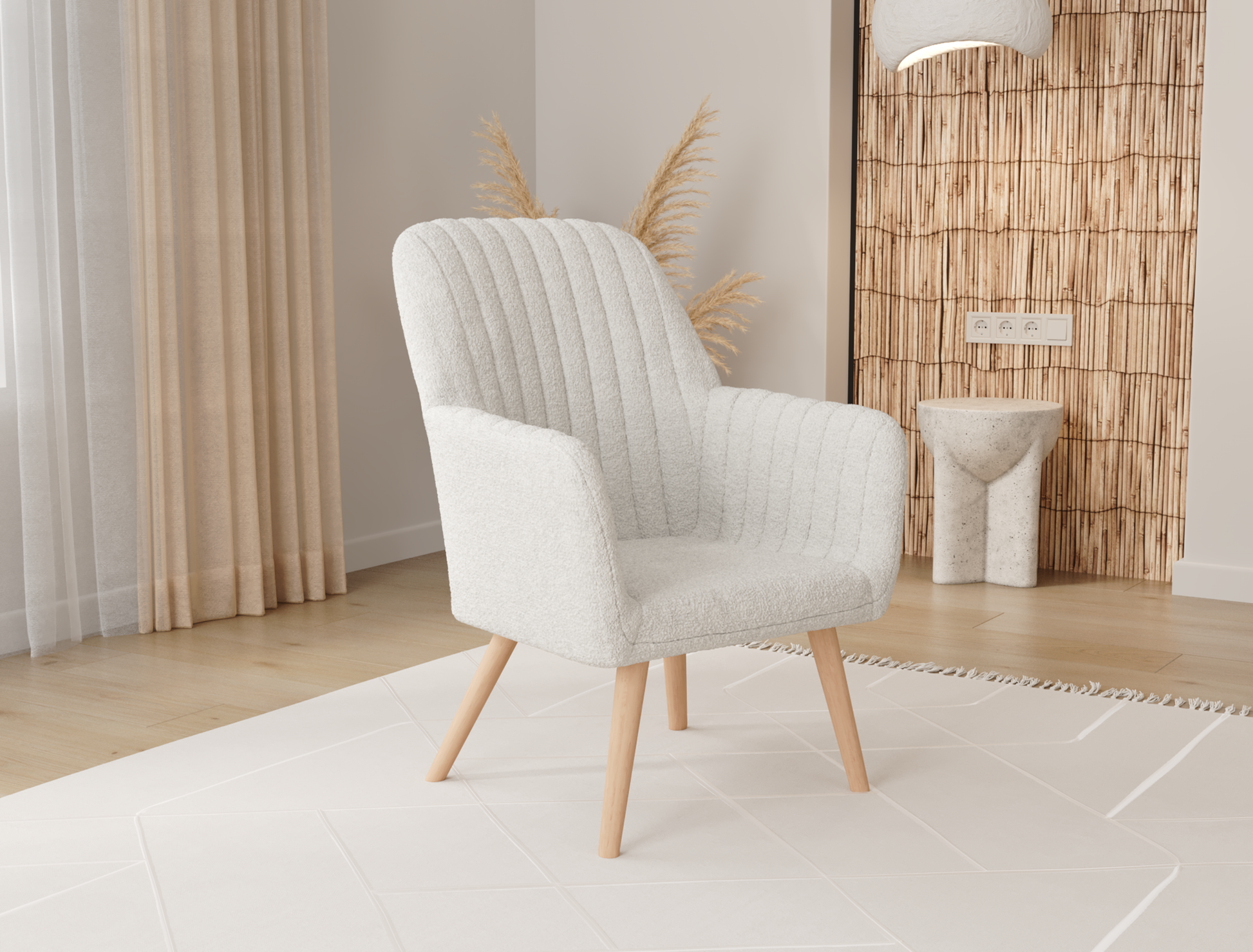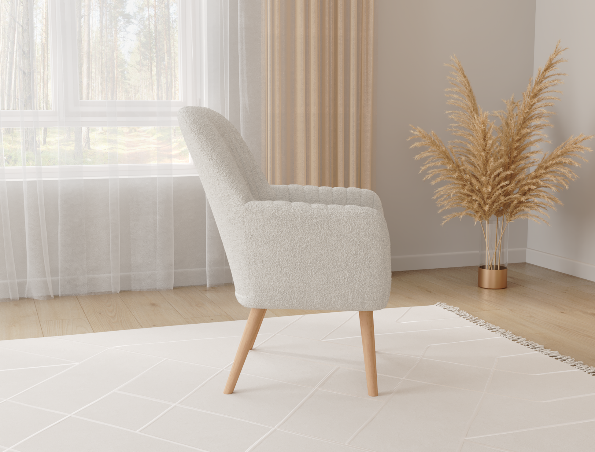 Everyone has a favorite armchair, and this one is about to become yours. With its wide, deep seat and winged backrest, it offers maximum comfort and full body support. The luxurious Sherpa upholstery feels soft to the touch, while the sturdy wooden frame and natural wooden legs ensure stability. High resilience foam and extra thick padding make it a truly supportive seat, and the included lumbar pillow adds extra back support. Smooth, rounded corners complete the refined design.