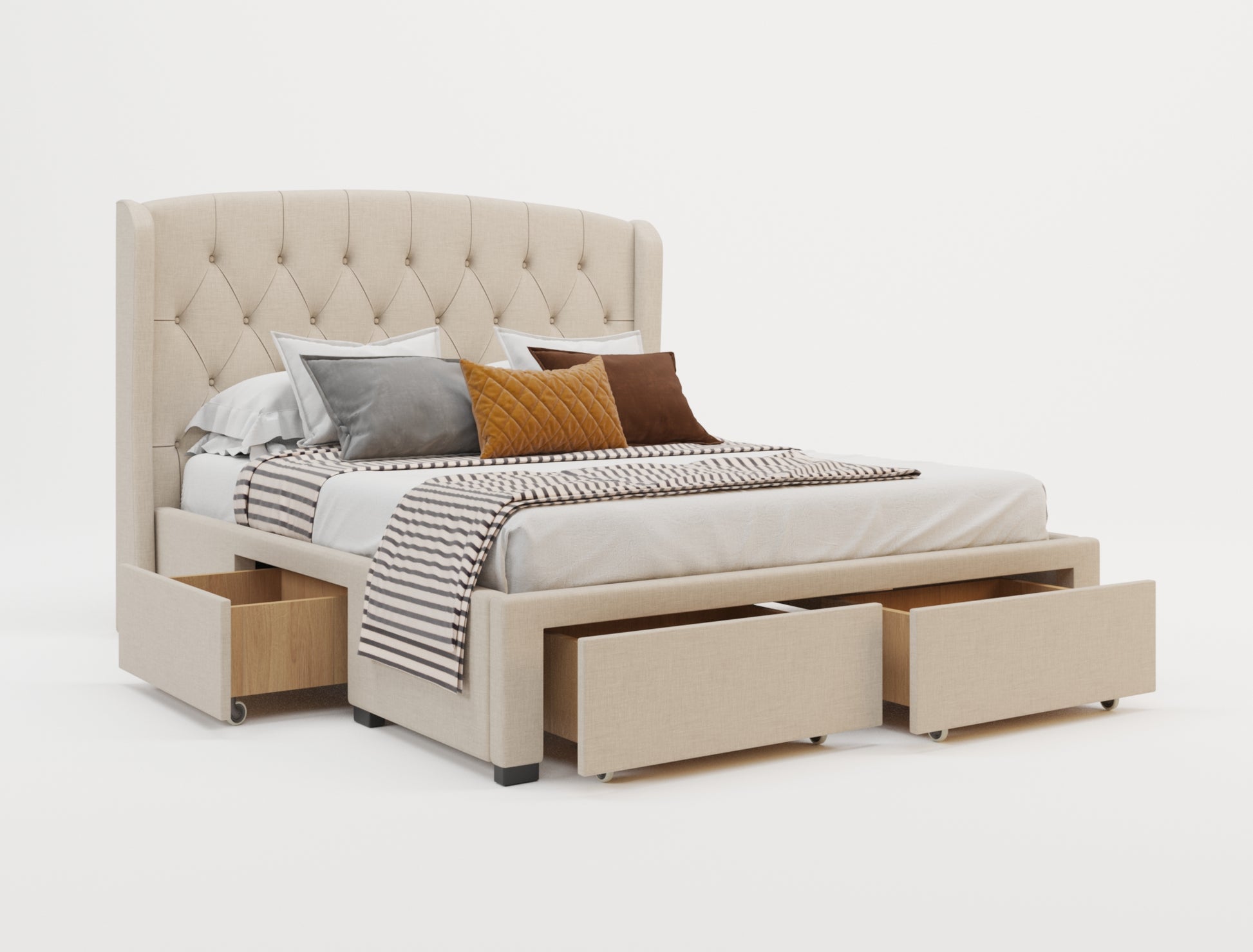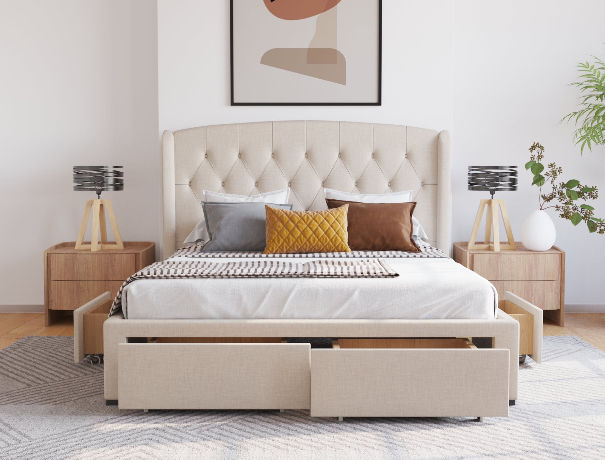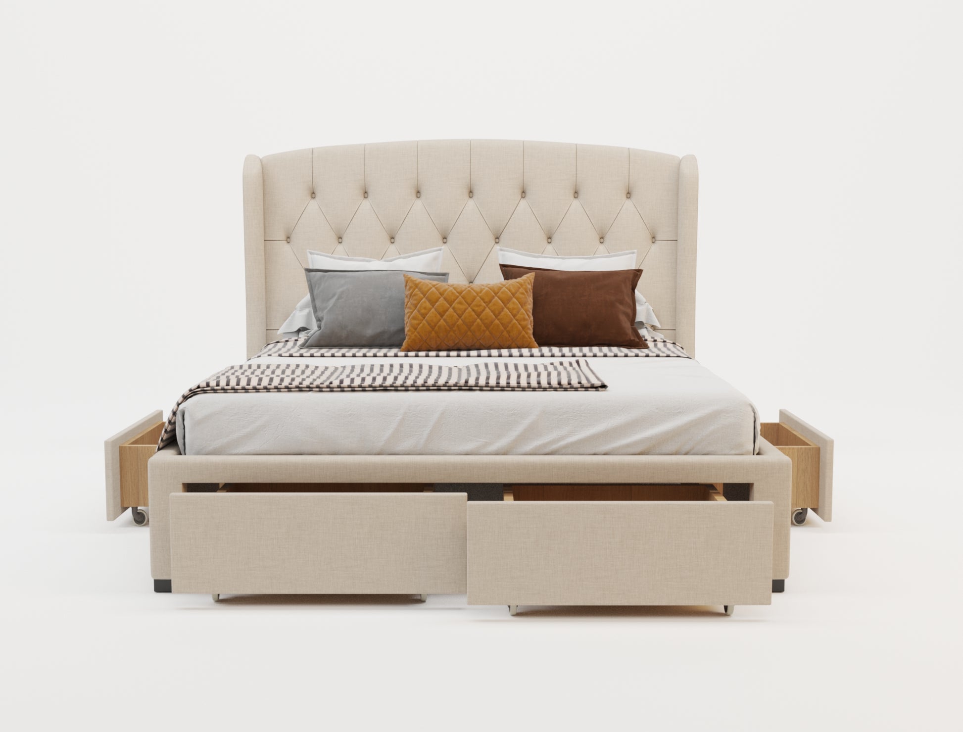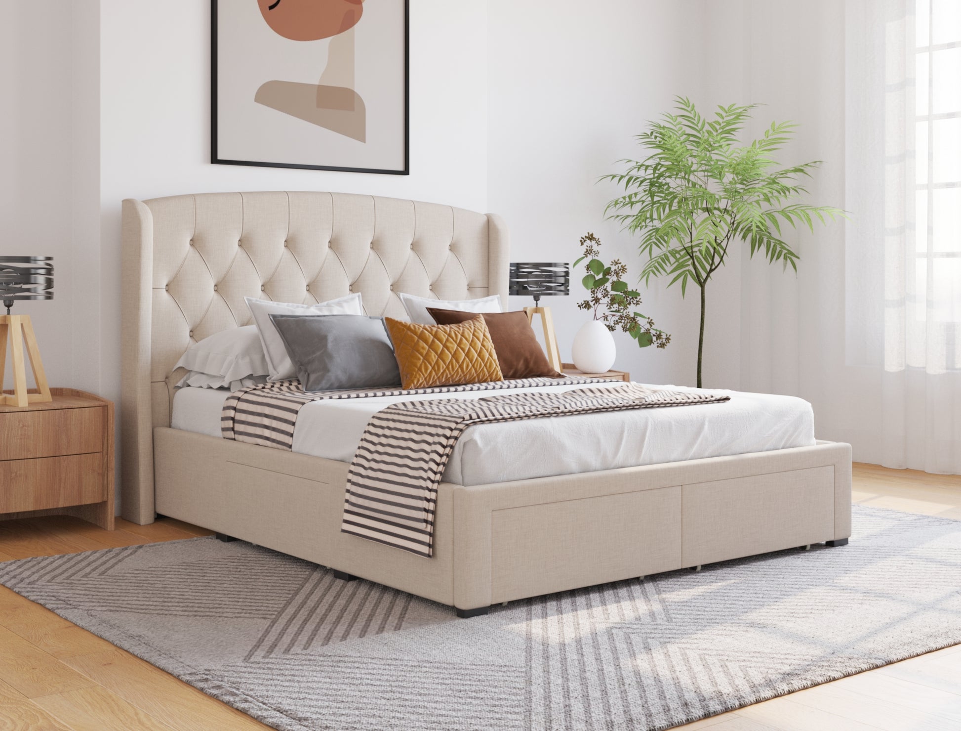 Audrey Beige White Oak Drawer Bed Frame