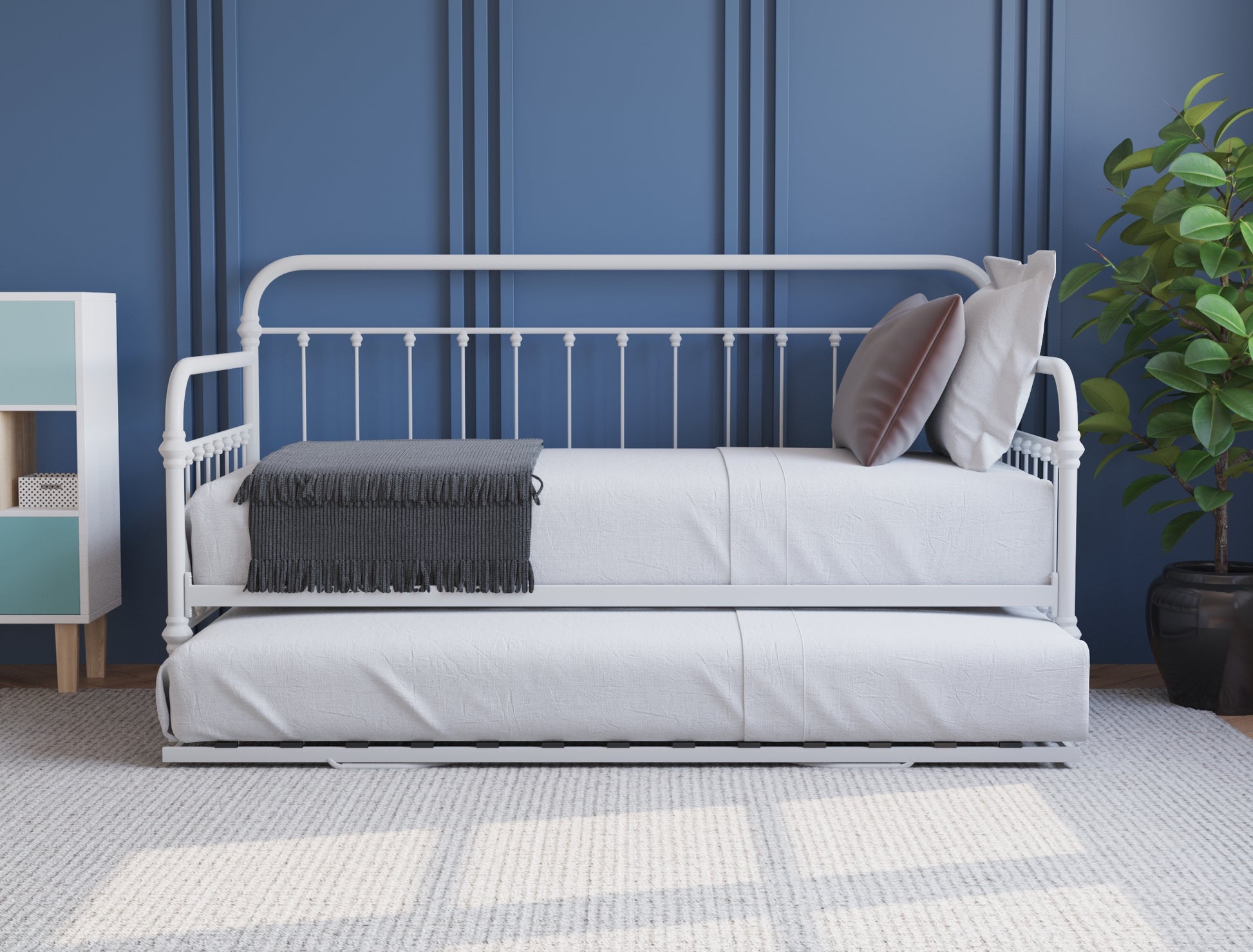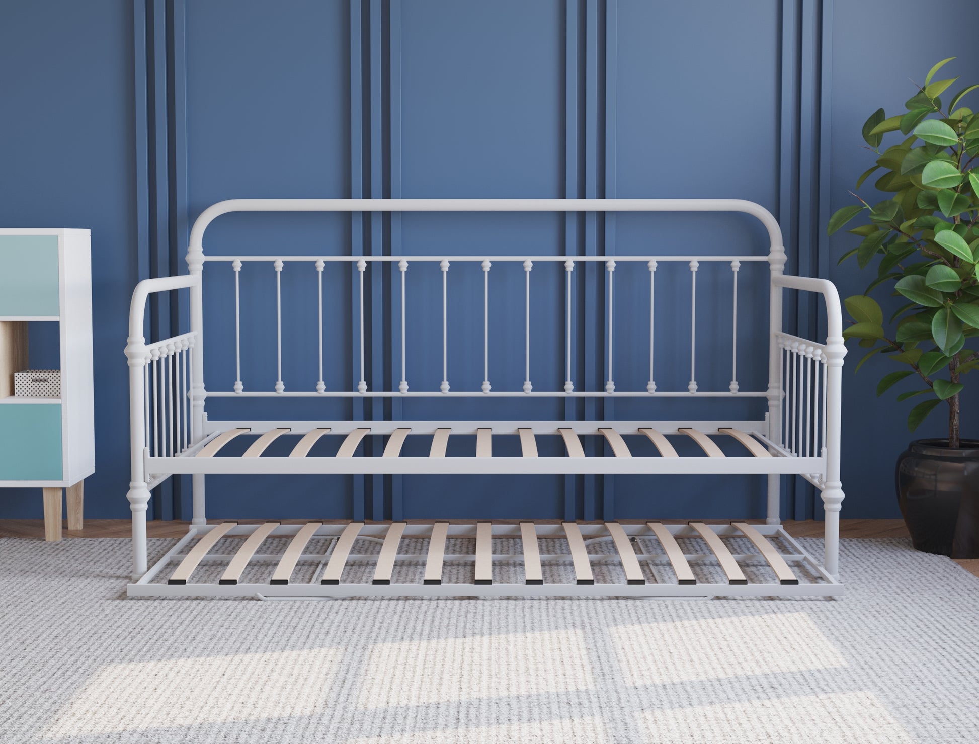 Zenith White Metal Trundle Bed