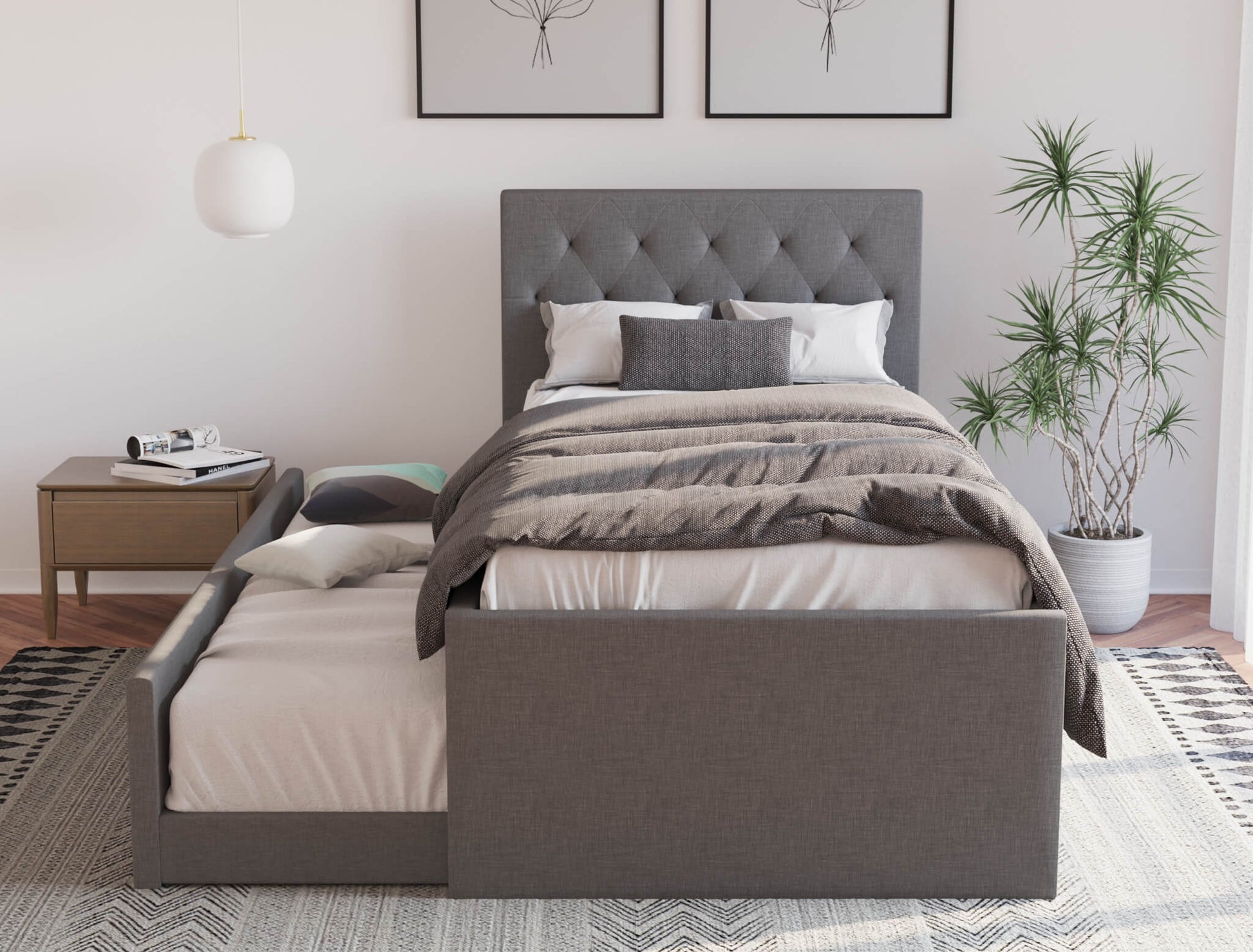 No matter how much force you apply, the bed won't make a squeaky noise when pulled out or pushed in. It also comes with premium-quality fabric upholstery that is wear-resistant and easy to clean, giving you peace of mind.