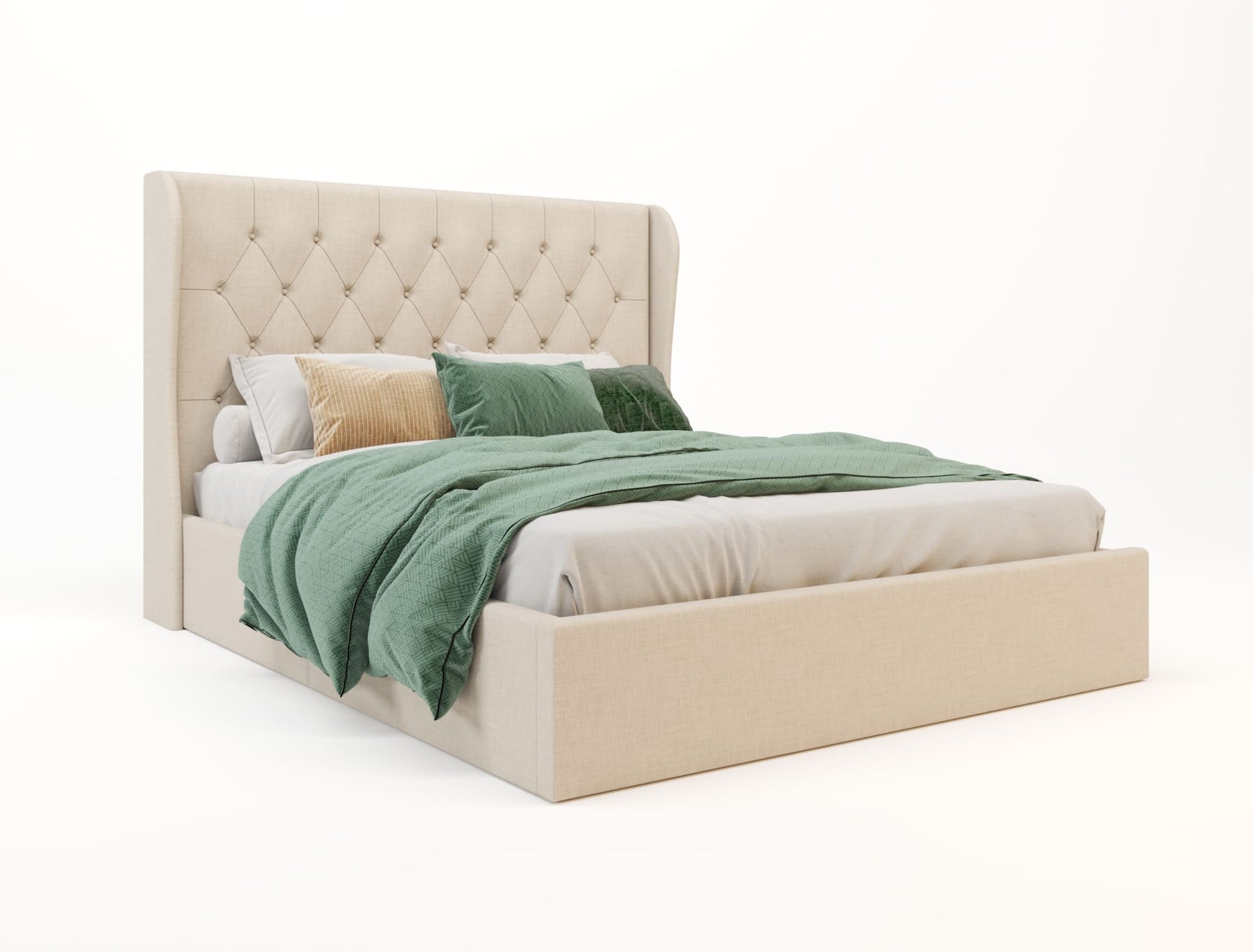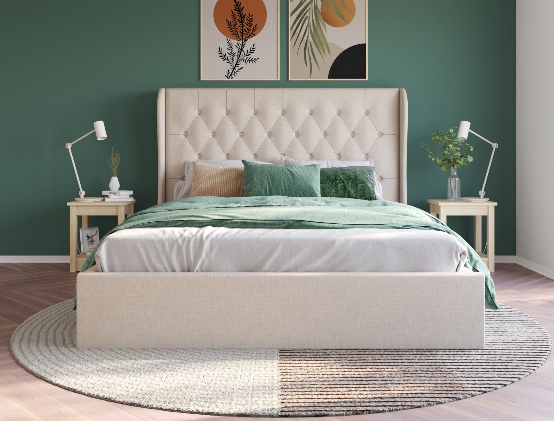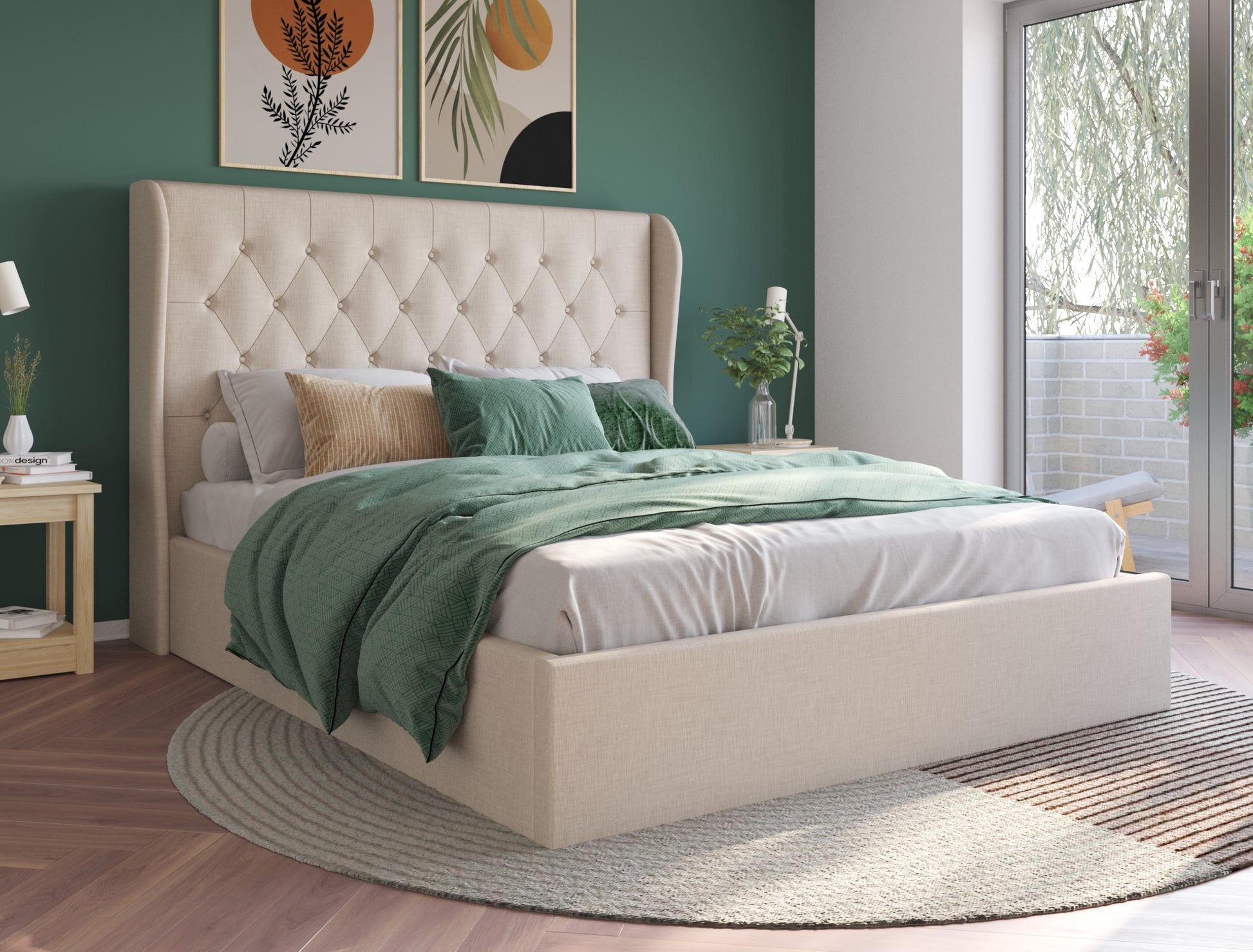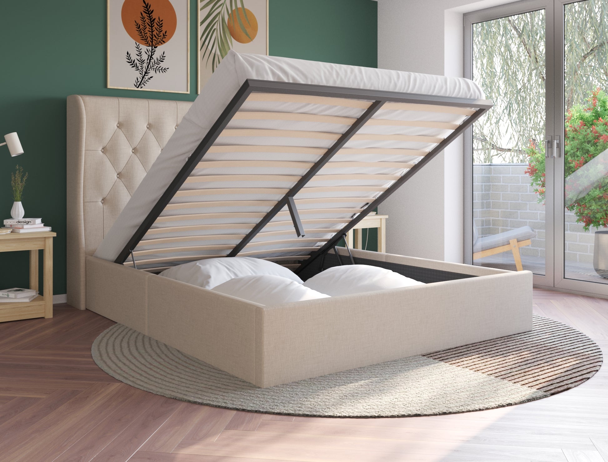 Harlow Beige White Oak Fabric Gas Lift Bed Frame