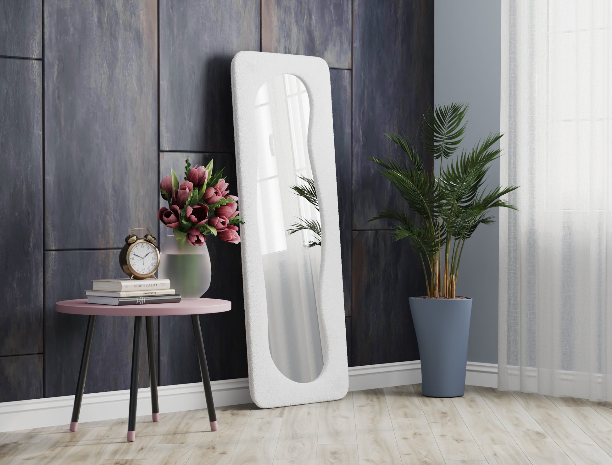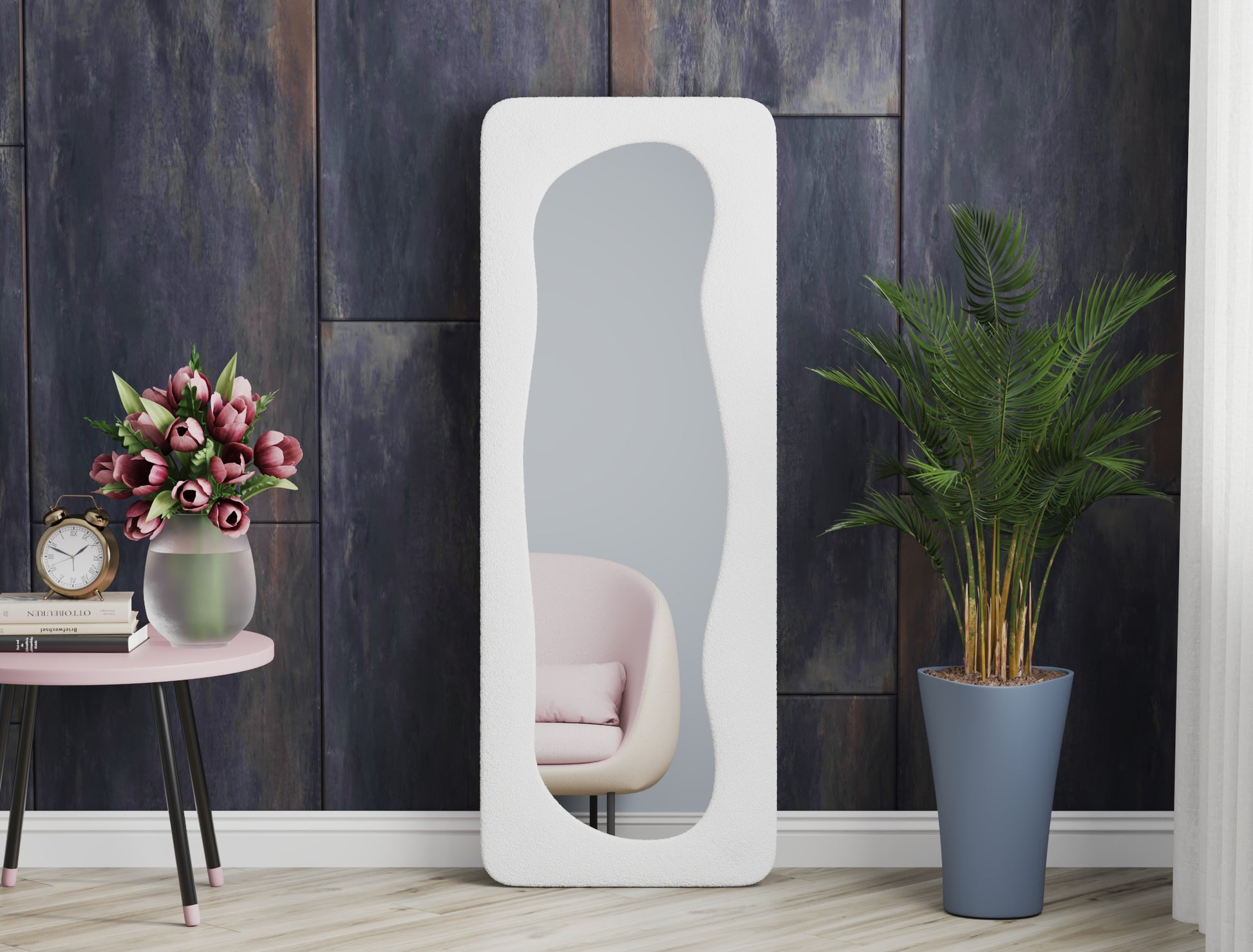 With its organic-inspired design and abstract aesthetic, this mirror stands out as a statement piece, inspiring creativity in styling and decor.