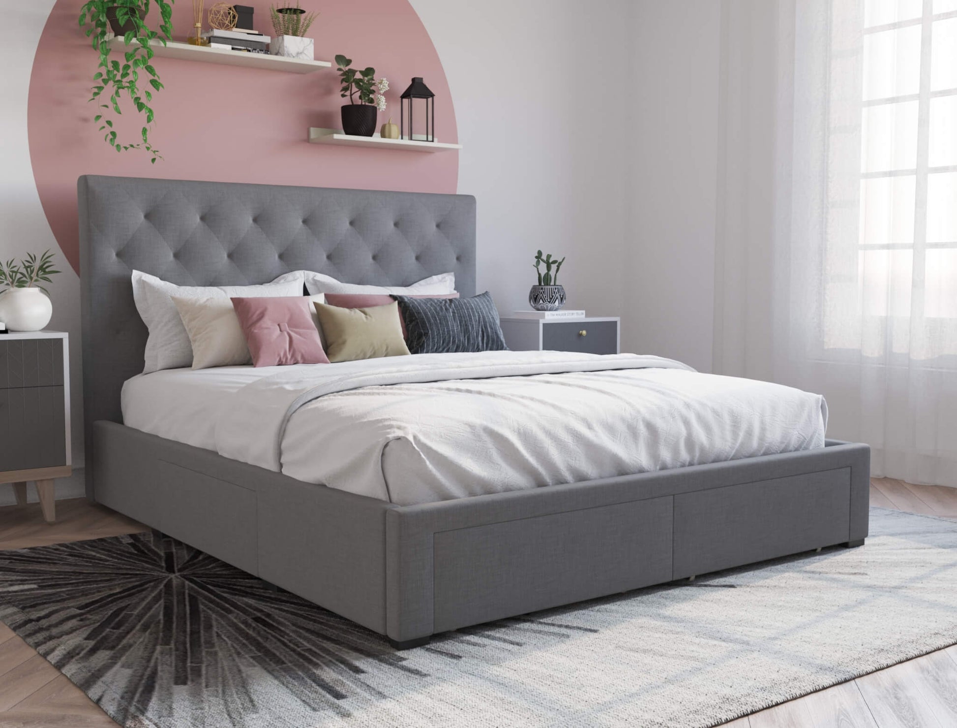 Elevate your room’s appearance with this bed upholstered with high-quality grey fabric. The classic button detailing in the headboard also adds to its elegance, making it an eye-catching focal point in the room.