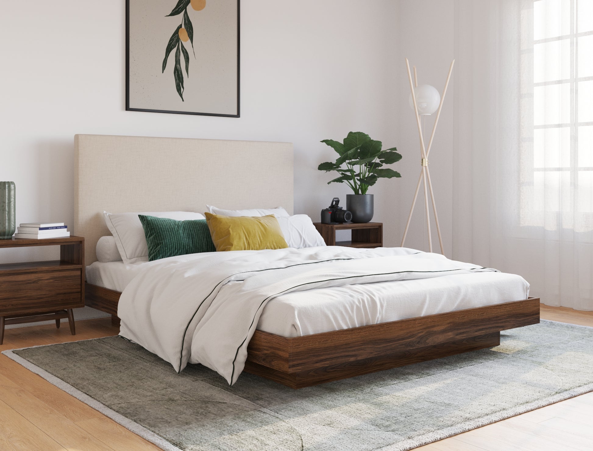 With a low-lying profile, this platform bed is independent of headboard and footboard. Placing it anywhere in the bedroom will make it the focal point of your space while adding elegance to it.