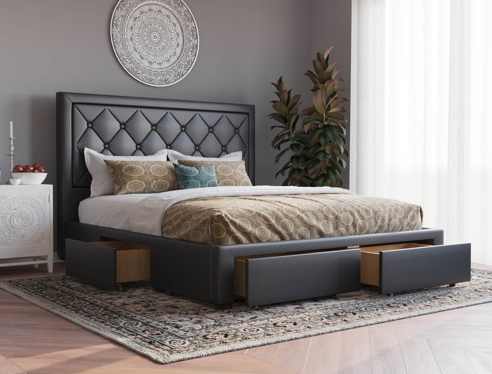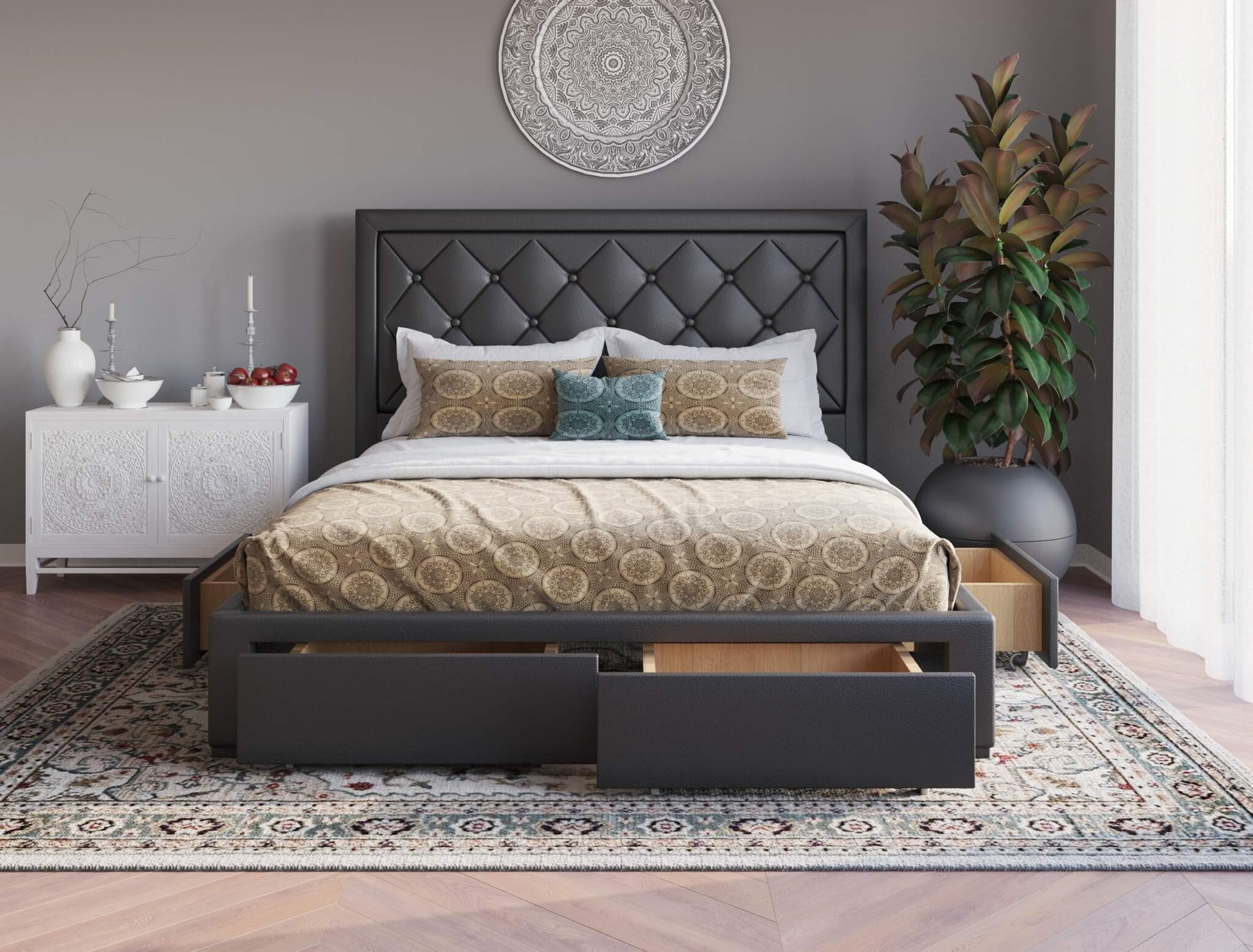 With a contemporary and chic design, this bed ticks off all the aspects one looks for in a perfect bed — comfort, elegance, and functionality. The button-tufted diamond detailing on the headboard adds a dash of style to the bed, making it an ideal piece for various decors.