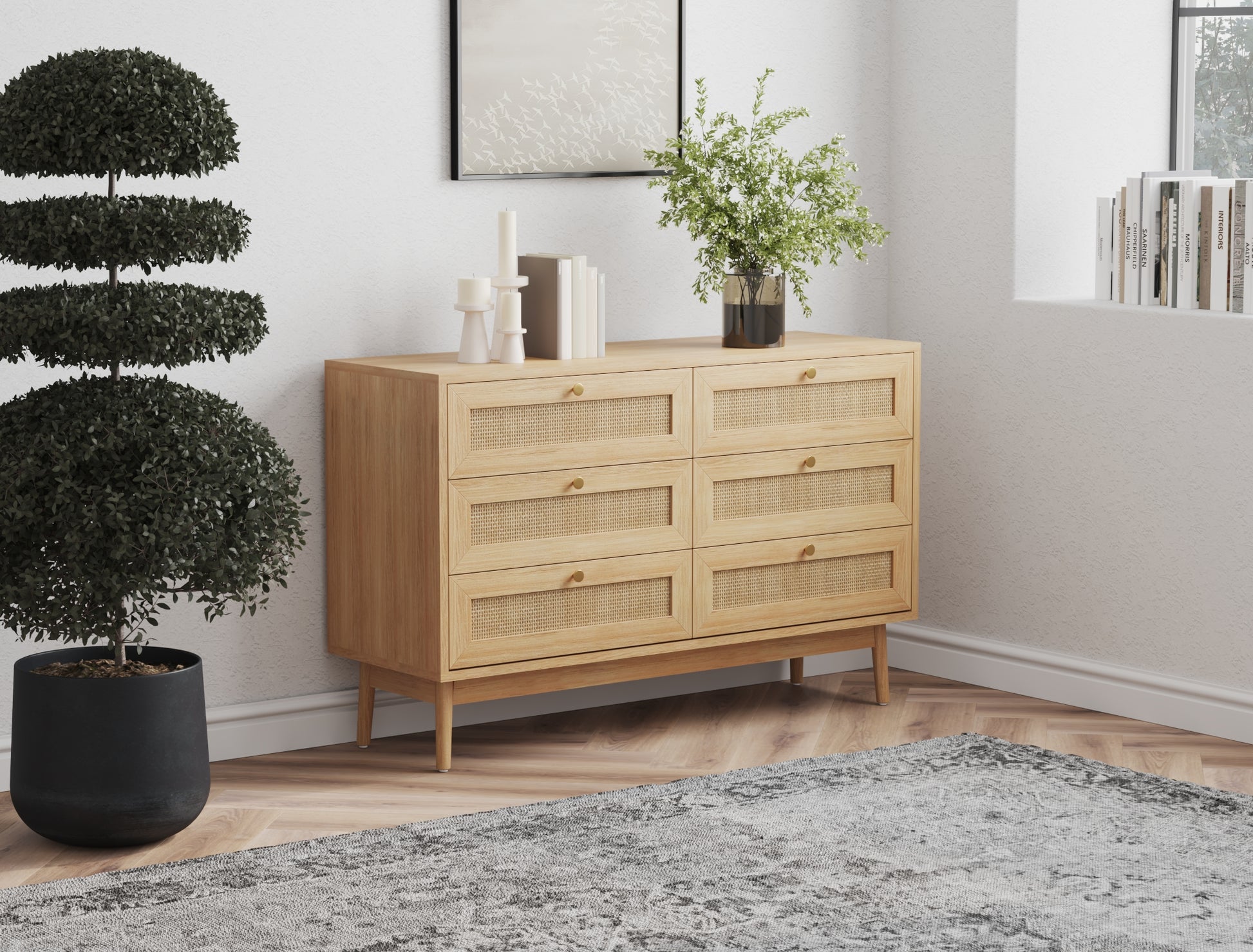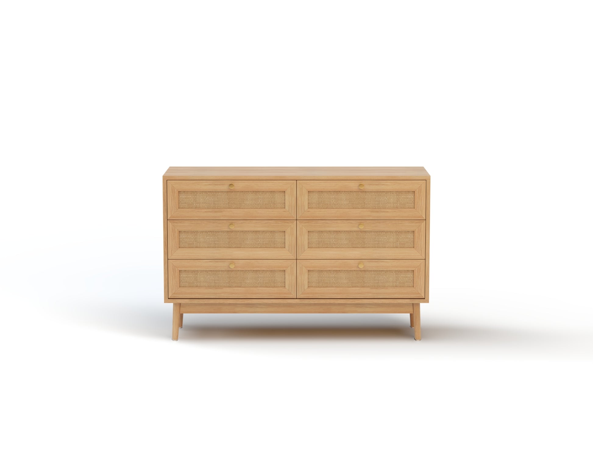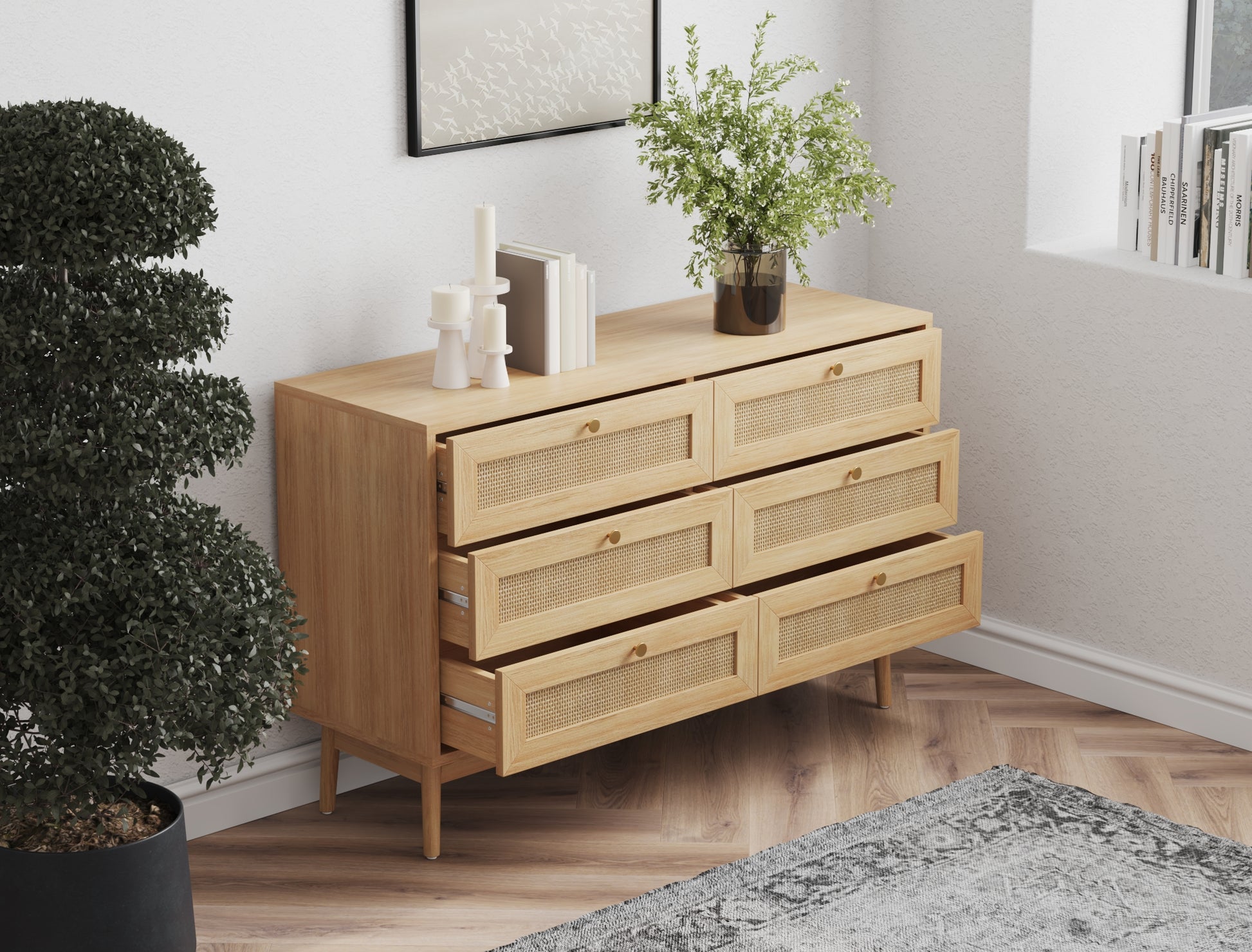 The Miller Rattan Chest of Drawers is a stunning Simplex-style centerpiece that elevates your living and bedroom's sophistication and charm. This is a statement that emphasizes the aesthetic and functional qualities of the Miller range in the context of interior design.