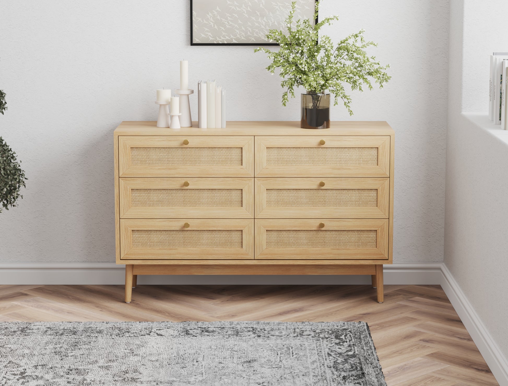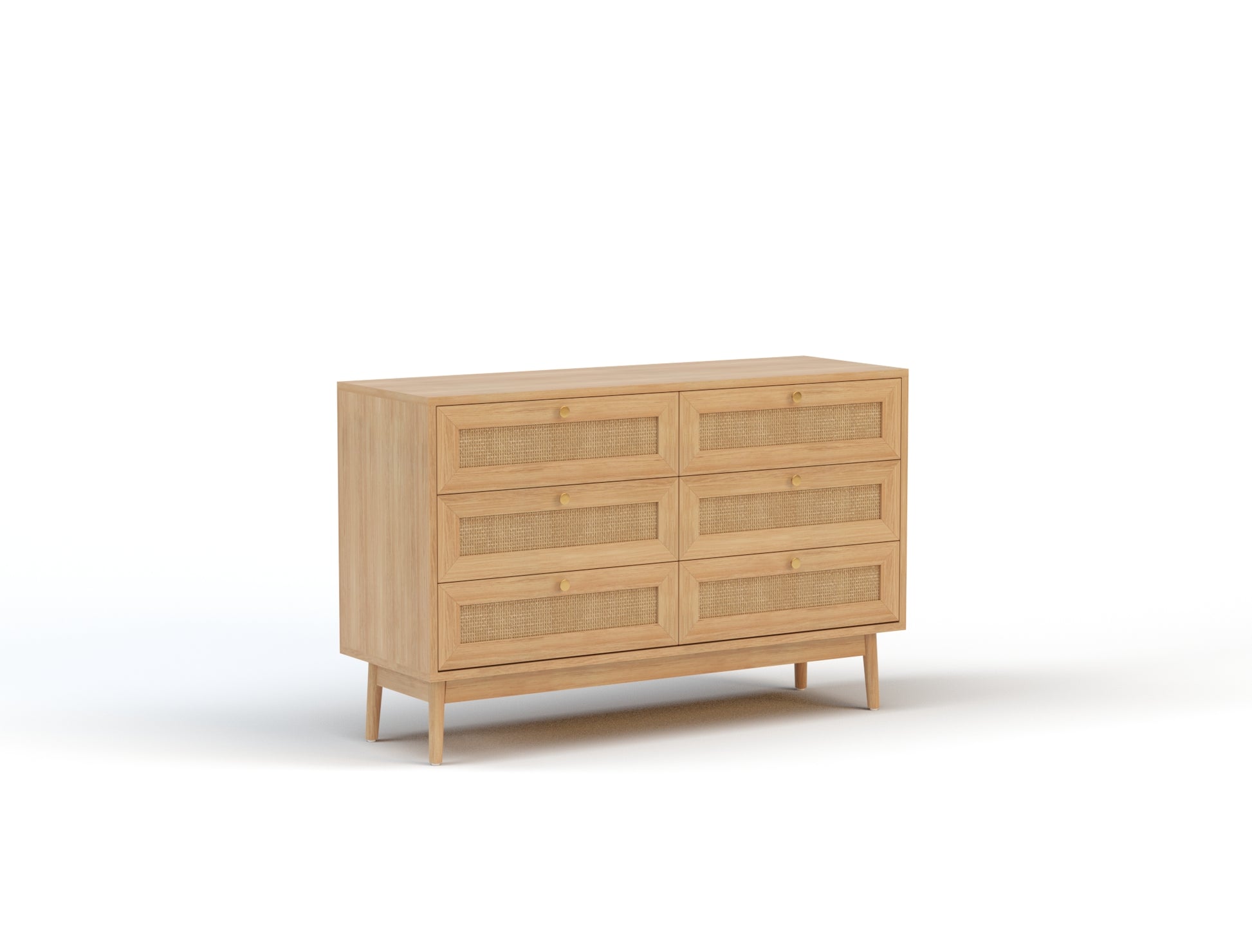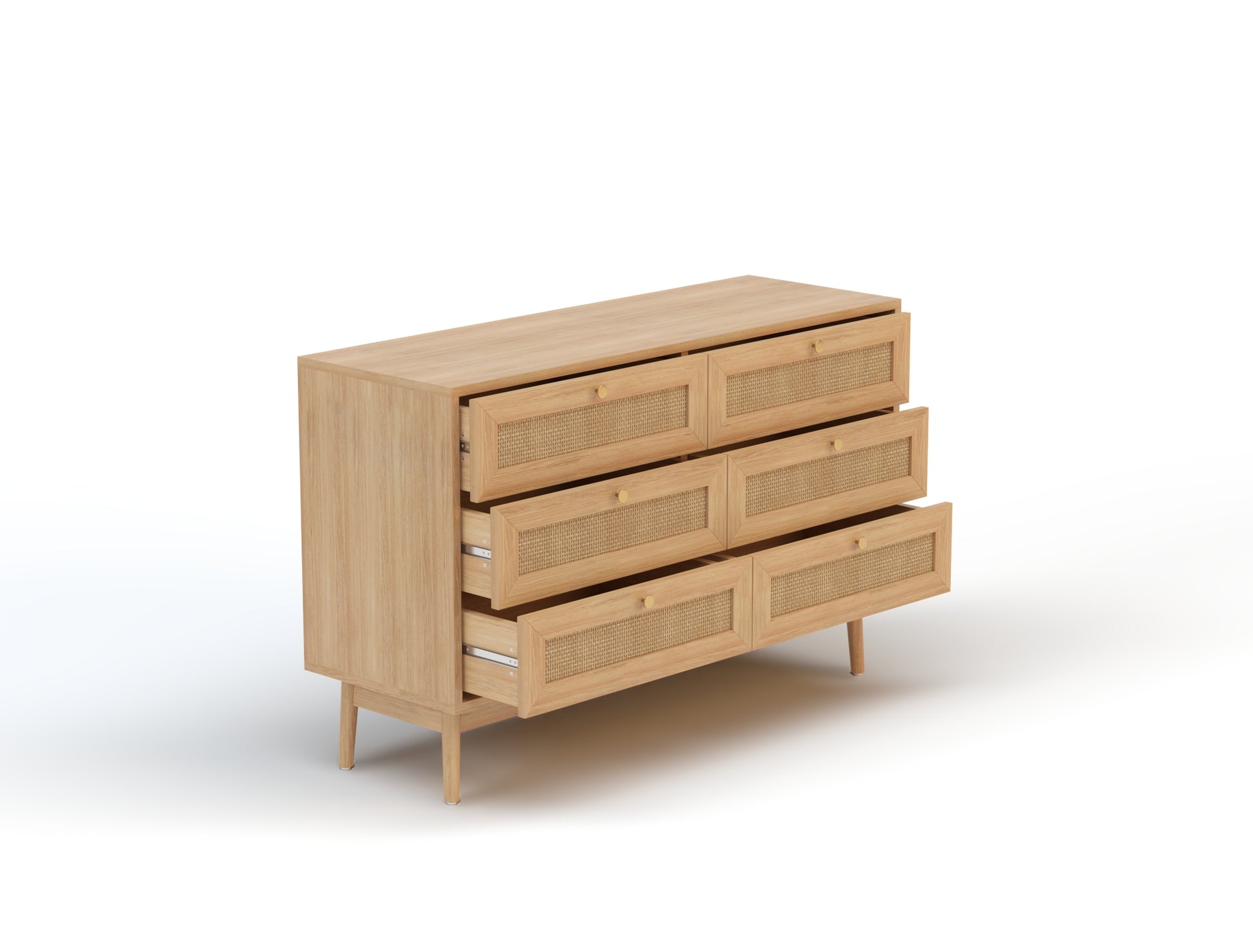 The Miller Rattan Chest of Drawers is a stunning Simplex-style centerpiece that elevates your living and bedroom's sophistication and charm. This is a statement that emphasizes the aesthetic and functional qualities of the Miller range in the context of interior design.