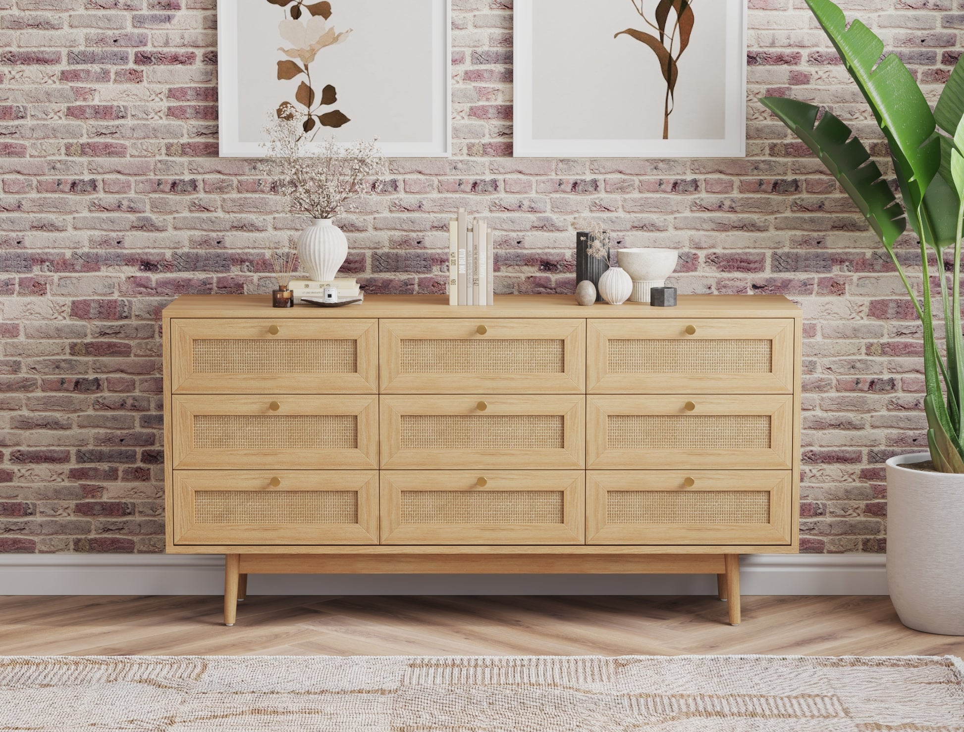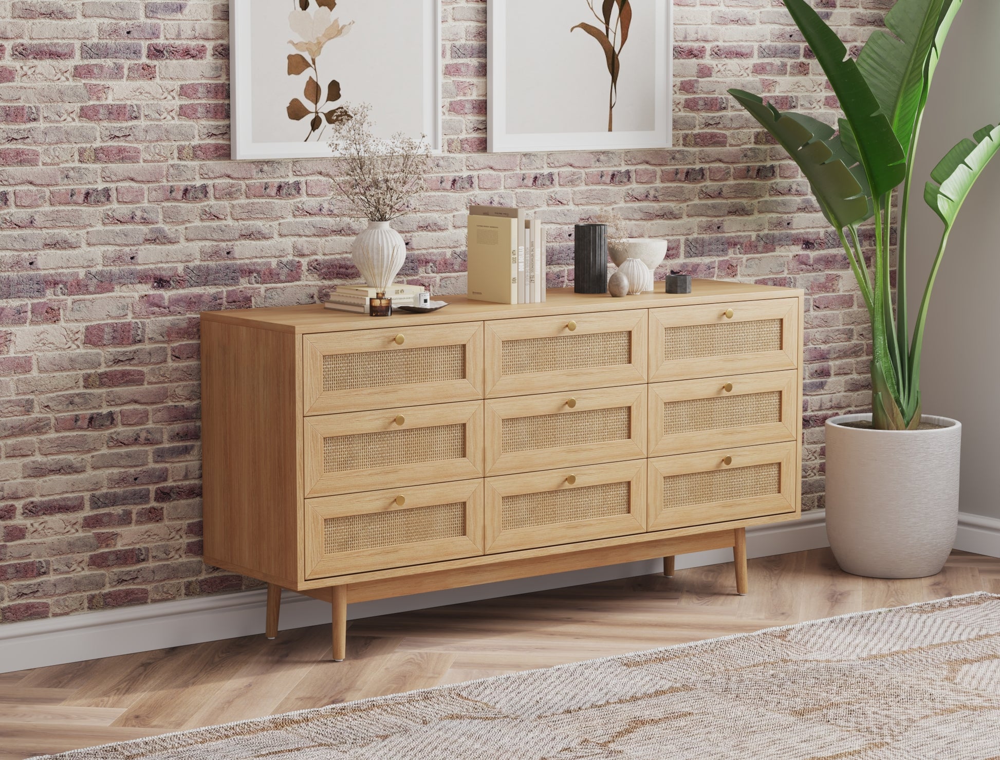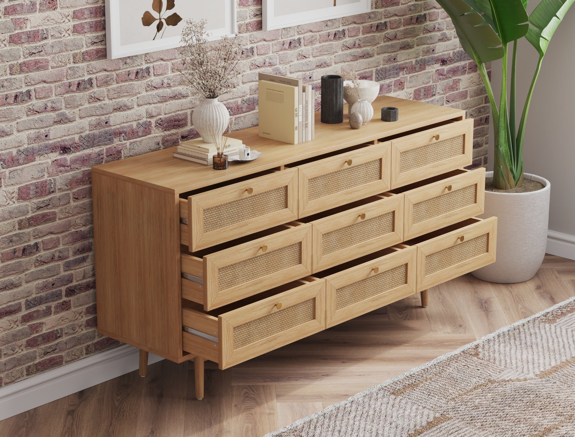 The Miller Rattan Chest of Drawers is a stunning Simplex-style centerpiece that elevates your living and bedroom's sophistication and charm. This is a statement that emphasizes the aesthetic and functional qualities of the Miller range in the context of interior design.