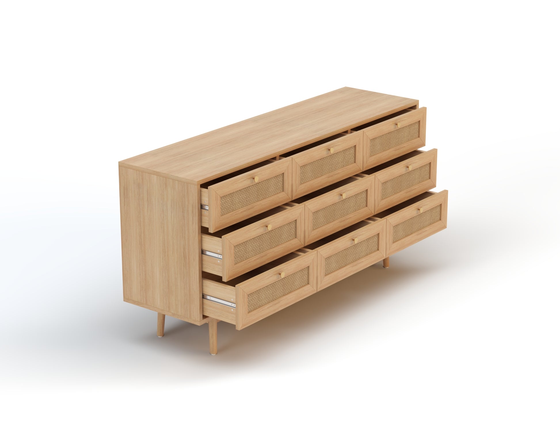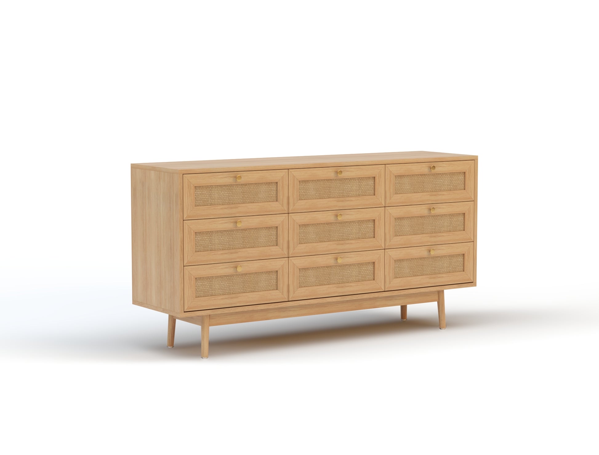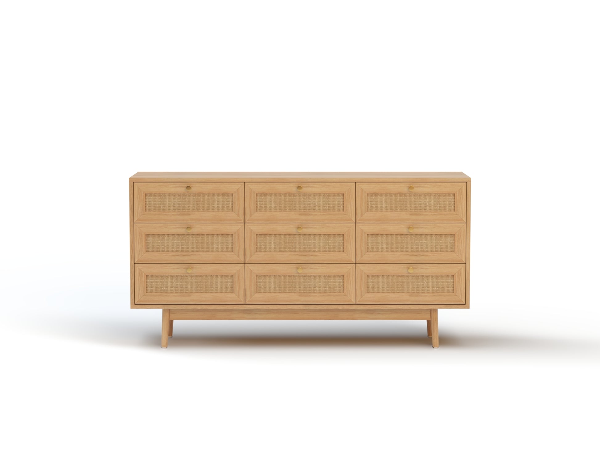 The Miller Rattan Chest of Drawers is a stunning Simplex-style centerpiece that elevates your living and bedroom's sophistication and charm. This is a statement that emphasizes the aesthetic and functional qualities of the Miller range in the context of interior design.