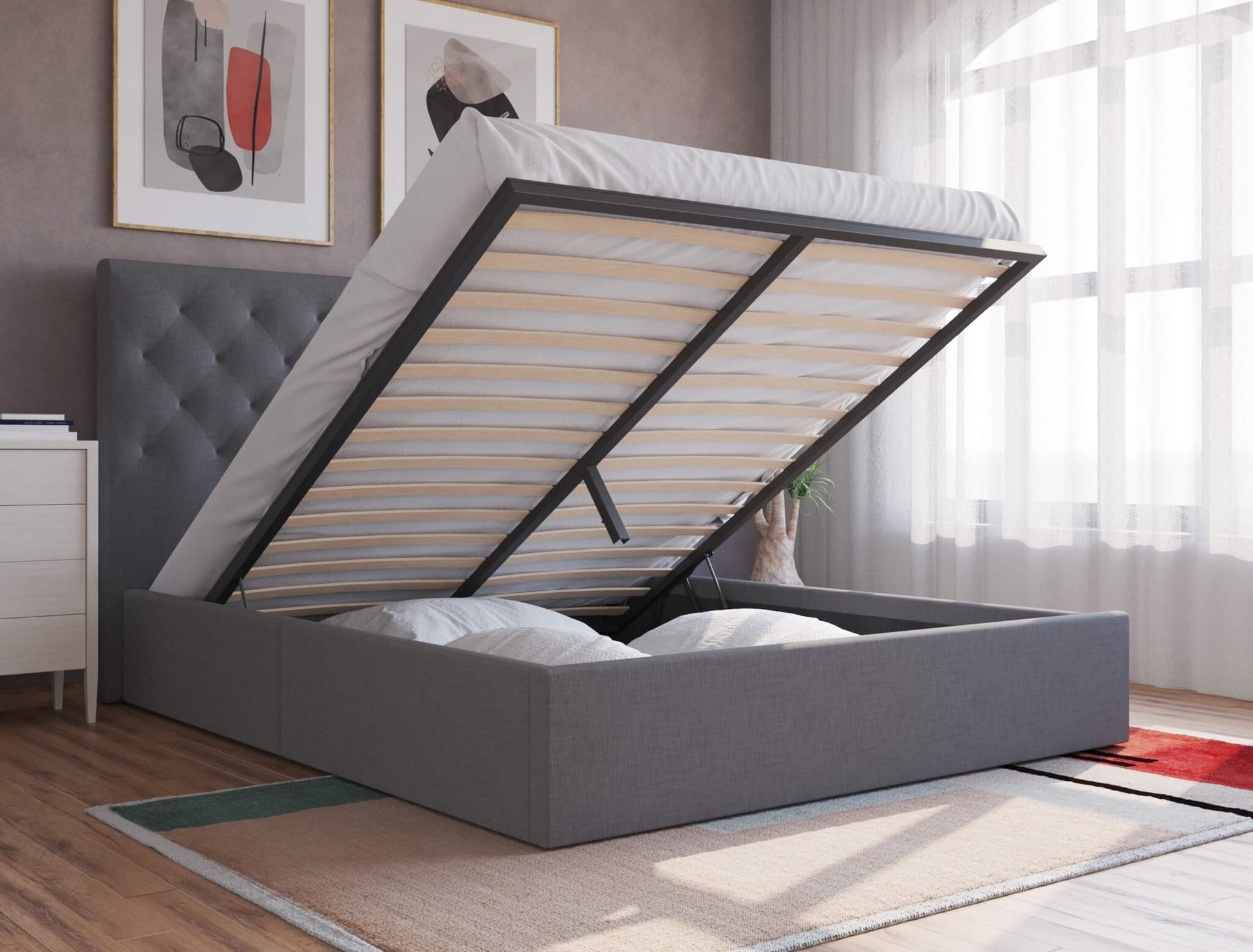 Keep your space clutter-free by storing your bedding and seasonal clothes in the storage compartment underneath the mattress.