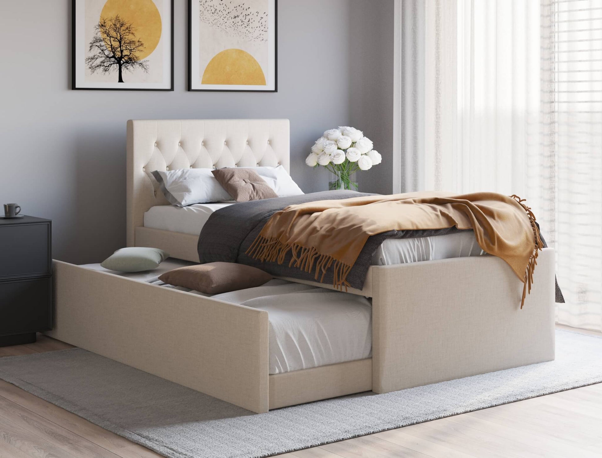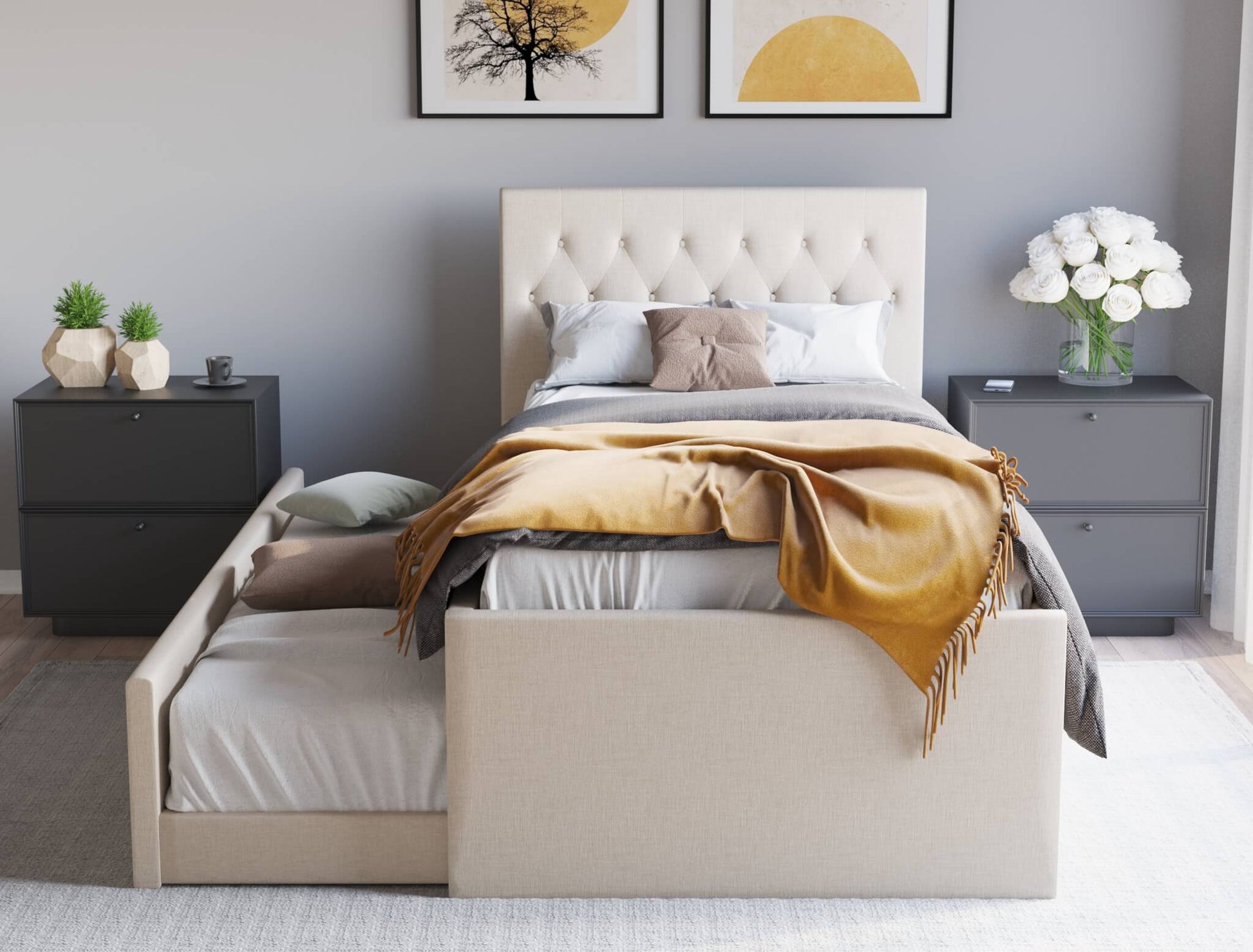 Boasting a space-efficient design, this bed comes equipped with an extra bed in the base that you can pull out effortlessly. Its neutral white shade not only creates a peaceful environment but also blends well with all kinds of decor styles.
