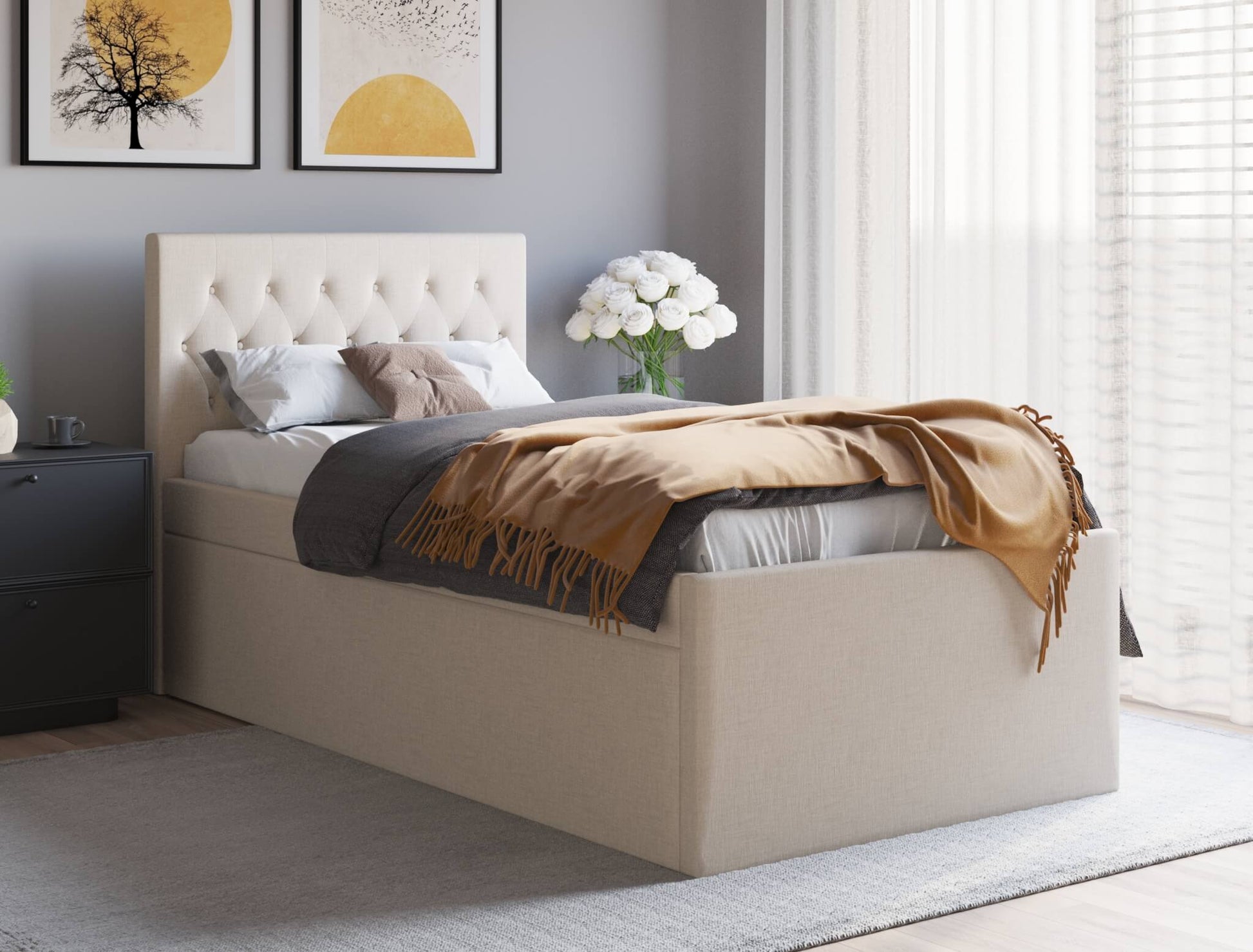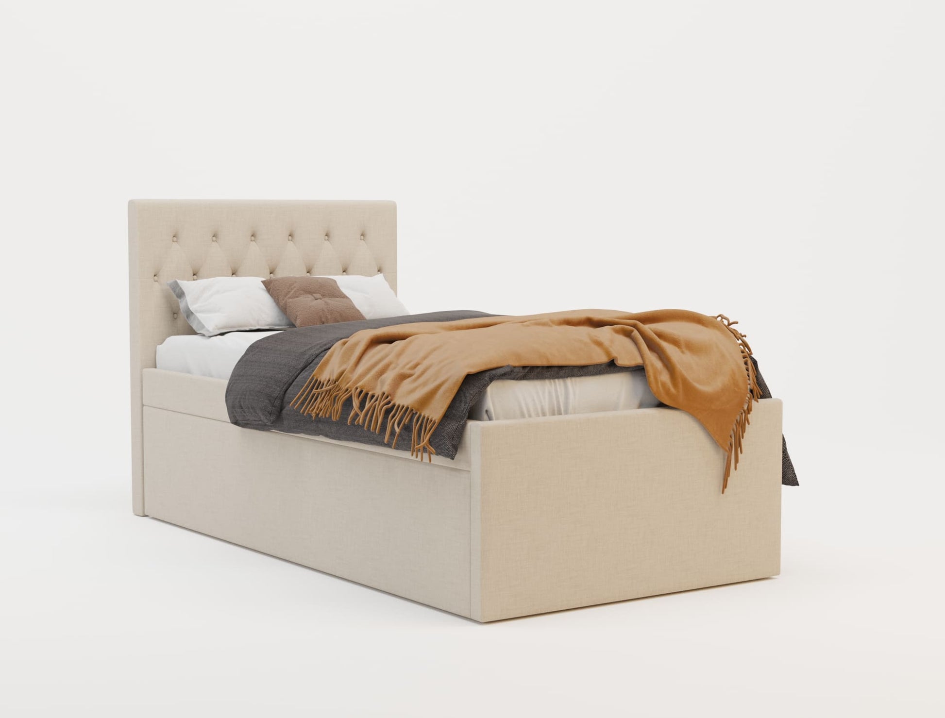 The bed is wrapped with white upholstery for a stunning finish, while the padded bedhead offers a soft resting spot.